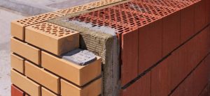 Технология укладки угловых элементов имеет свои особенности. Высота выкладывания угла — 4—6 рядов. В нижнем ряду, по длине внешней кромки, крепят прут квадратной формы, затем наносят раствор. Далее, проводится кладка кирпича. Чтобы блок надежно закрепить к стенке и прутку, его подбивают резиновым молоточком. Ровность укладки проверяют уровнем. Затем пруток вынимается, и все то же самое повторяется с другой стороны того же угла.