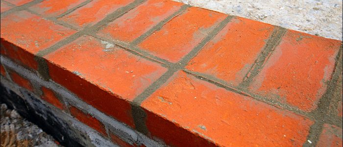 - Наносится раствор на поверхность за выложенным кирпичом.