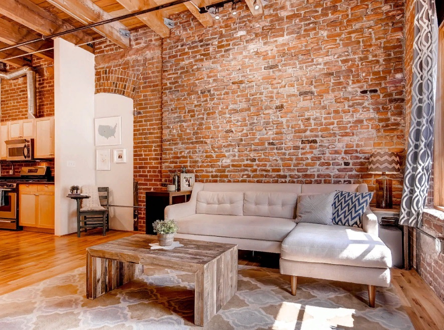 Не самый простой способ получения аутентичной стены, он бывает весьма трудоемким, к тому же, если вы живете в старом фонде, а тут попадаются дома с очень толстым слоем штукатурки. Сталинский и хрущевский кирпич может выглядеть привлекательно, тем более красив кирпич более старой застройки. И все же придется поработать, чтобы добраться до заветного слоя. Внешние стены обычно не очищают, подобная красота будет влиять на теплоизоляцию. После зачистки поверхности кирпич можно лакировать это даст защиту помещения от излишнего пылеобразования.
